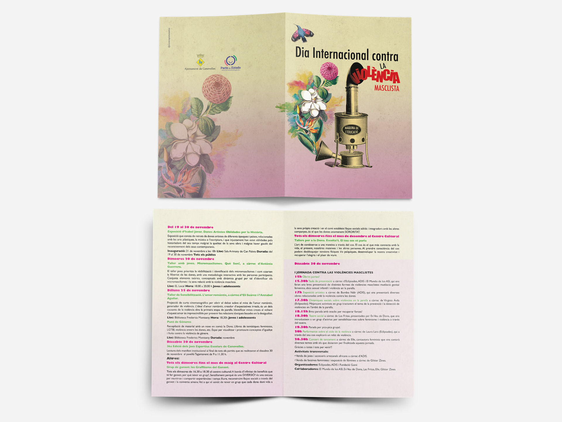 Diseño de díptico para el "Dia internacional contra la violencia de género". La imagen ha sido compuesta mediante la técnica del collage digital.